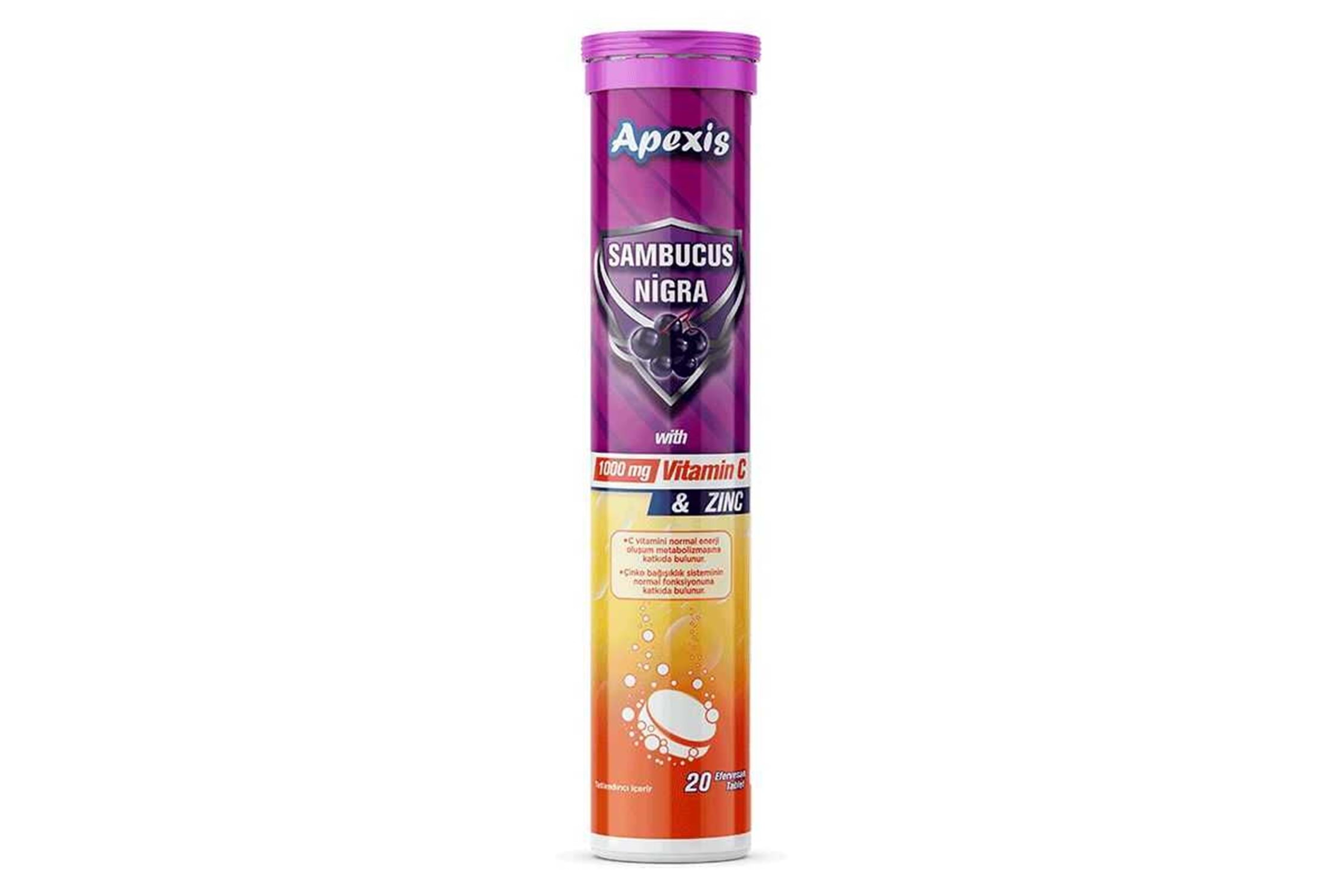 Apexis Sambucus + C Vitamini 1000 mg + Çinko 20 Efervesan Tablet